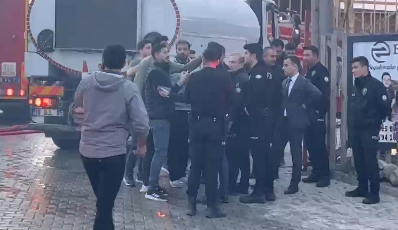 İhbar üzerine bölgeye çok sayıda itfaiye ve polis ekibi sevk edildi. İtfaiye ekipleri yangına müdahale ederken, iş yeri sahipleri, çevre güvenliği alan polis ekipleriyle tartıştı.