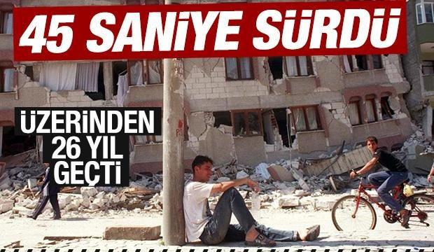 7,4 büyüklüğündeki Büyük Marmara Depreminin üzerinden 26 yıl geçti. 17 bin 480 kişi hayatını kaybetti, 285 bin 211 ev, 42 bin 900 işyeri hasar gördü, yüz binlerce kişi evsiz kaldı. Depremin üzerinden 26 yıl geçmesine rağmen acılar ise taze.