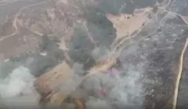 Öte yandan yangının havadan görüntüleri de çekildi. Çekilen görüntüler, yangının büyüklüğünü gözler önüne serdi.