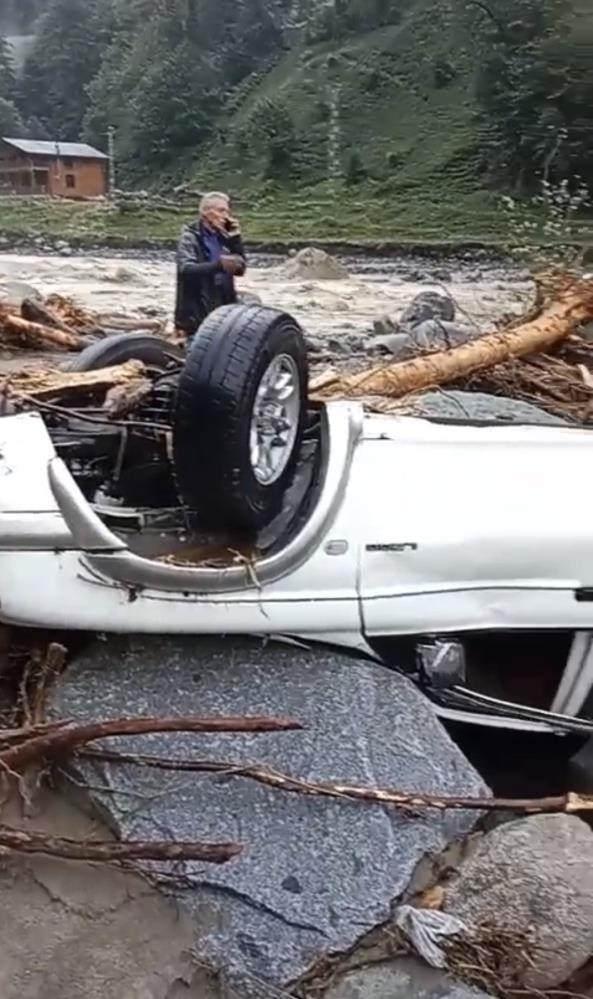 RİZE'DE 2 ARAÇ SEL SULARINA KAPILDI