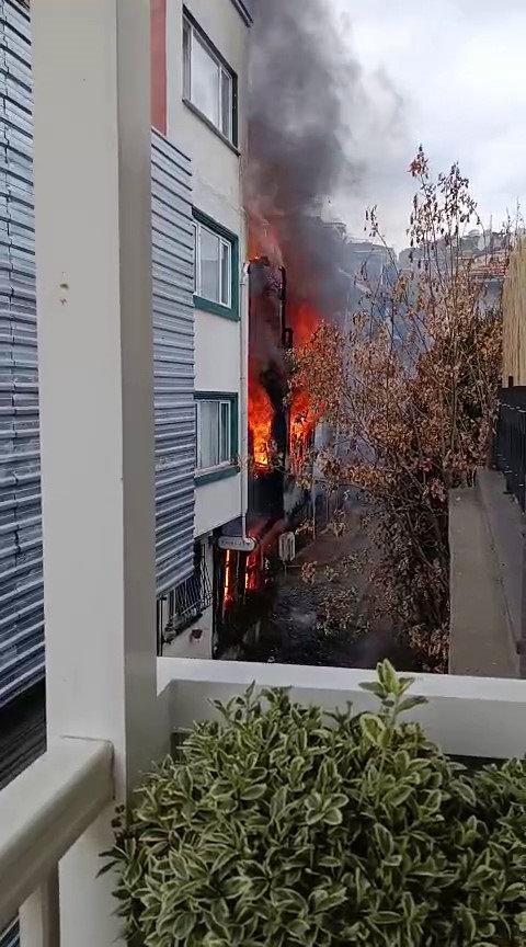 İstanbul'un Beşiktaş ilçesinde, 4 katlı ahşap binada yangın çıktı. Alevlere teslim olan bina yanarak çöktü.
