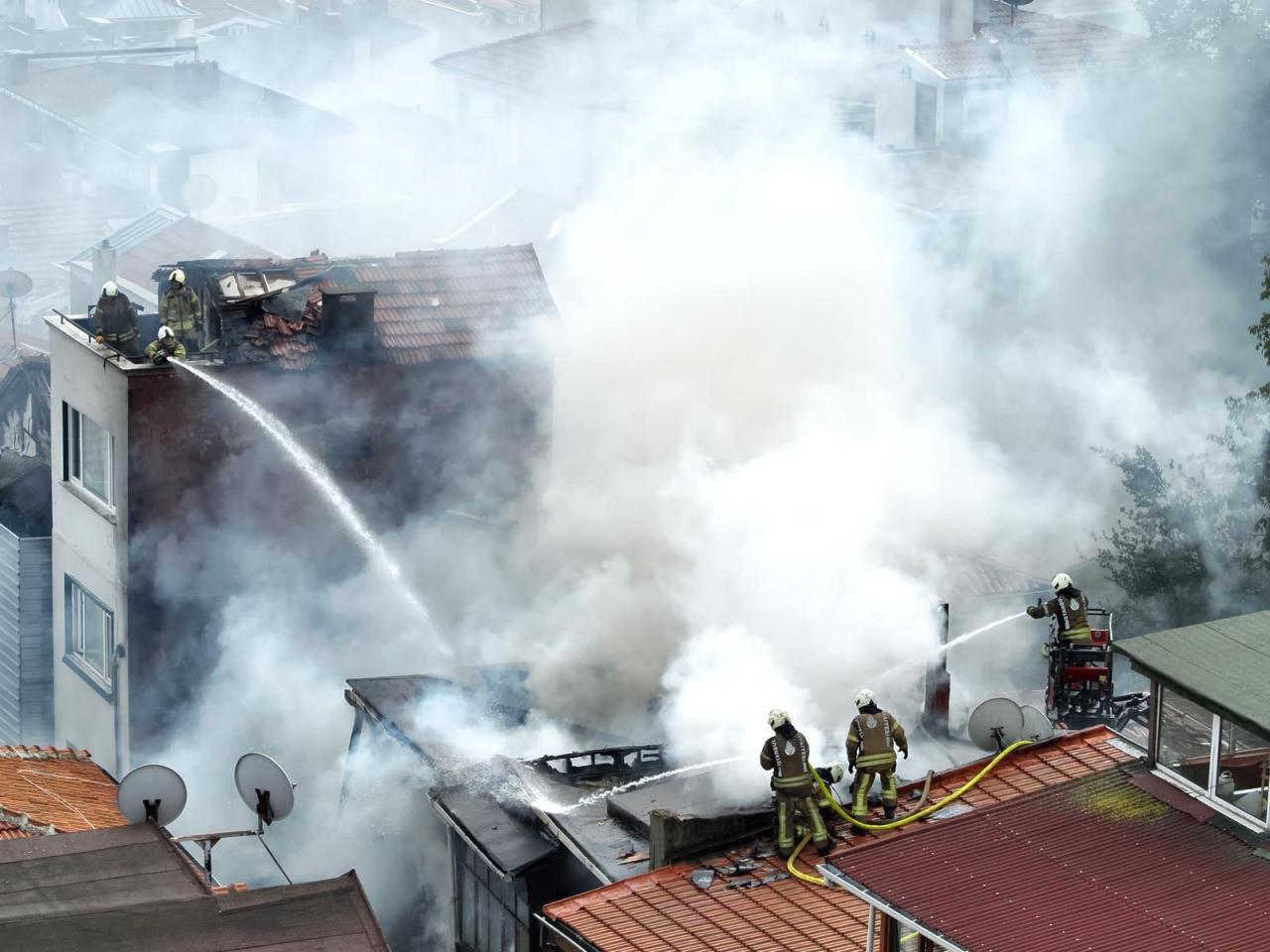 Alevler kısa sürede yan taraftaki diğer ahşap binaya da sıçradı. İhbar üzerine olay yerine çok sayıda itfaiye, sağlık ve polis ekibi sevk edildi.
