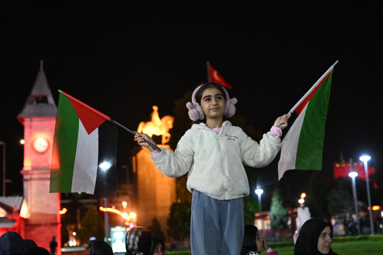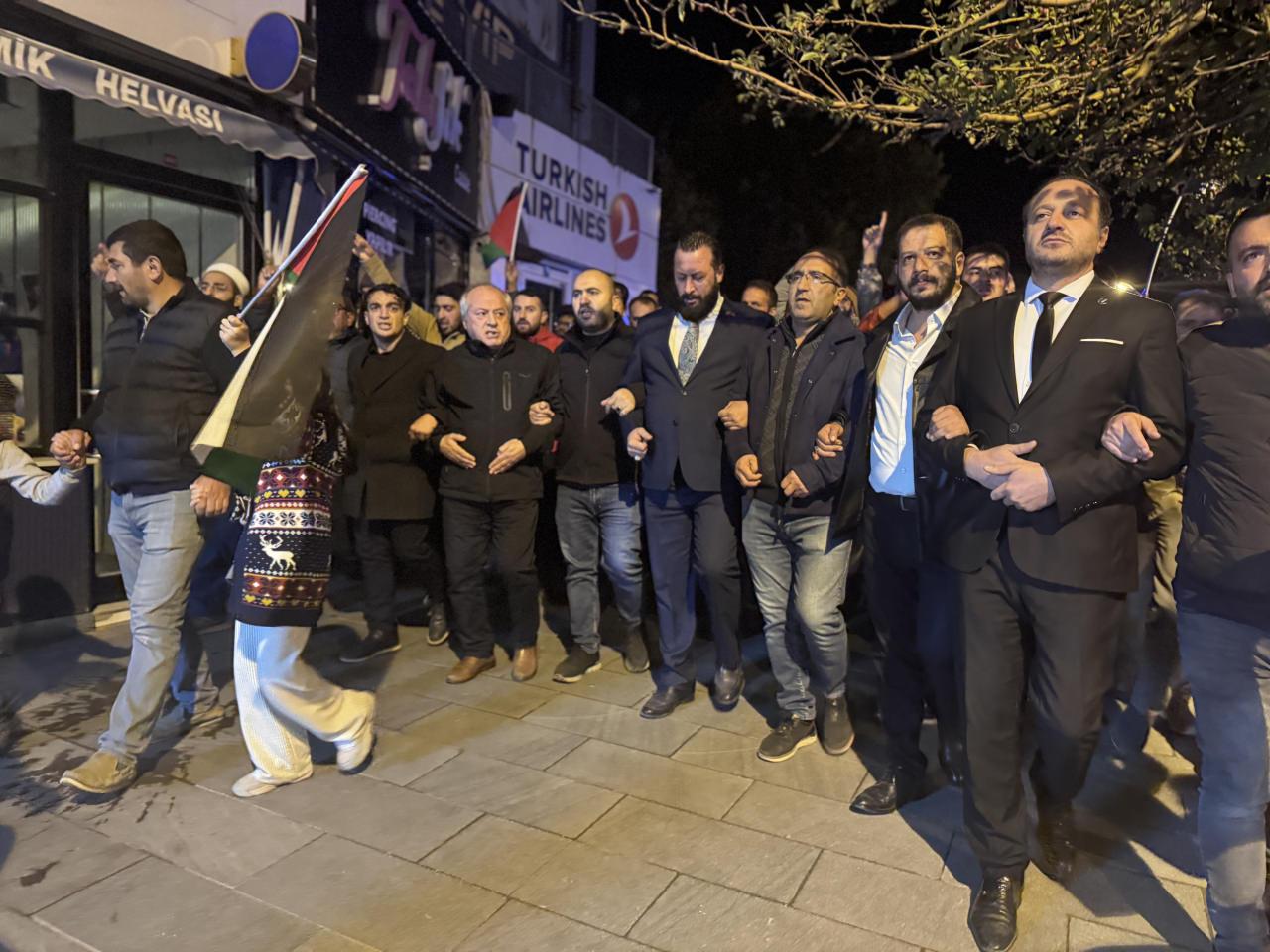 İzmir'de Konak Meydanı'ndan toplanan çok sayıda kişi, İsrail aleyhine slogan attı. Ellerindeki Türk ve Filistin bayrakları ile çeşitli pankartlar taşıyan vatandaşlar, tekbir getirdi.