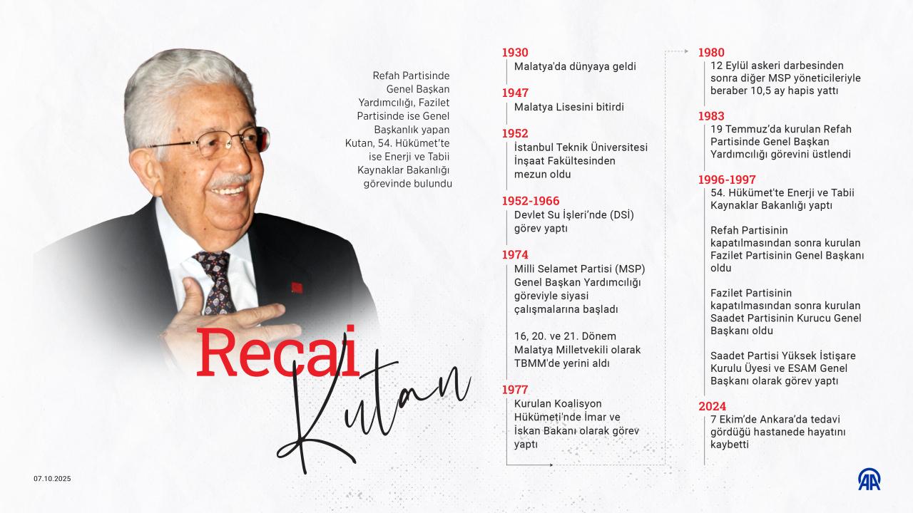 Recai Kutan 7 Ekim 2024'te hayatını kaybetti.
