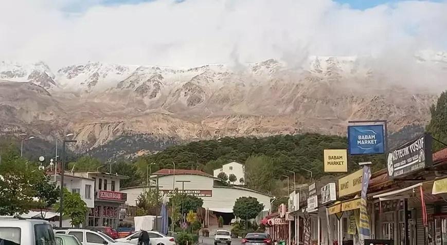 Antalya'nın Kaş ilçesine bağlı Gömbe Mahallesi'ndeki 2700 rakımlı Akdağ mevkisine gece saatlerinde kar yağdı. Dağın beyaza büründüğünü gören vatandaşlar, fotoğraf çekti.