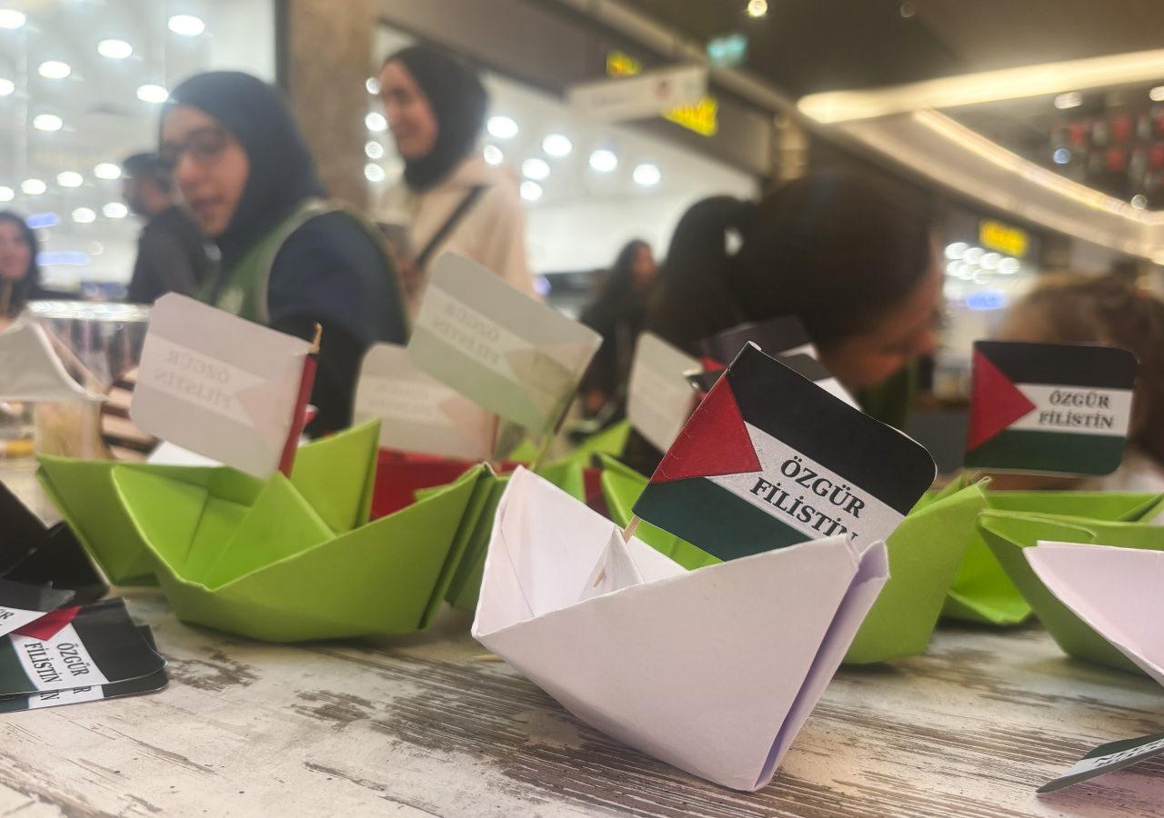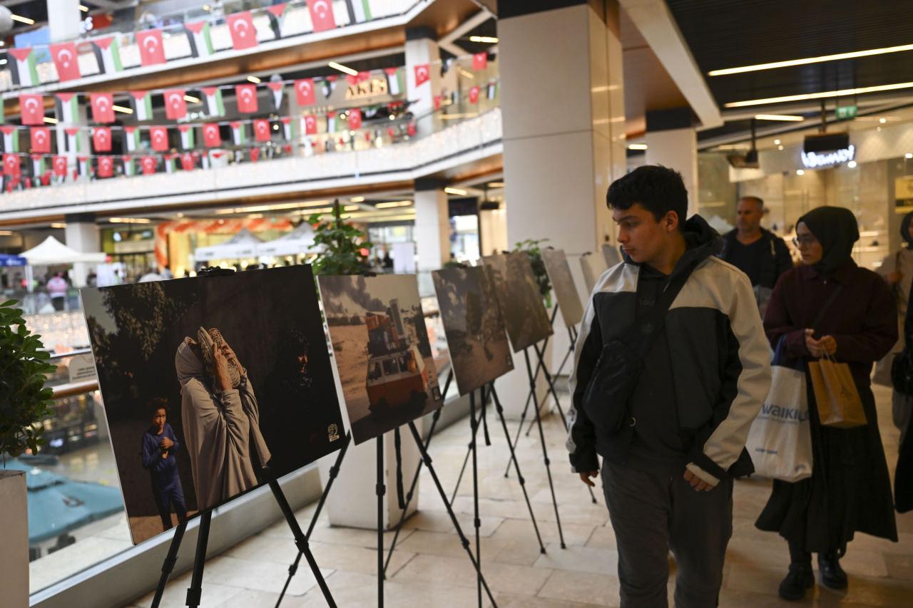 Alışveriş merkezleri Türk ve Filistin bayraklarıyla donatılırken, Gazze'deki soykırımın fotoğraflarının yer aldığı sergi düzenlendi.