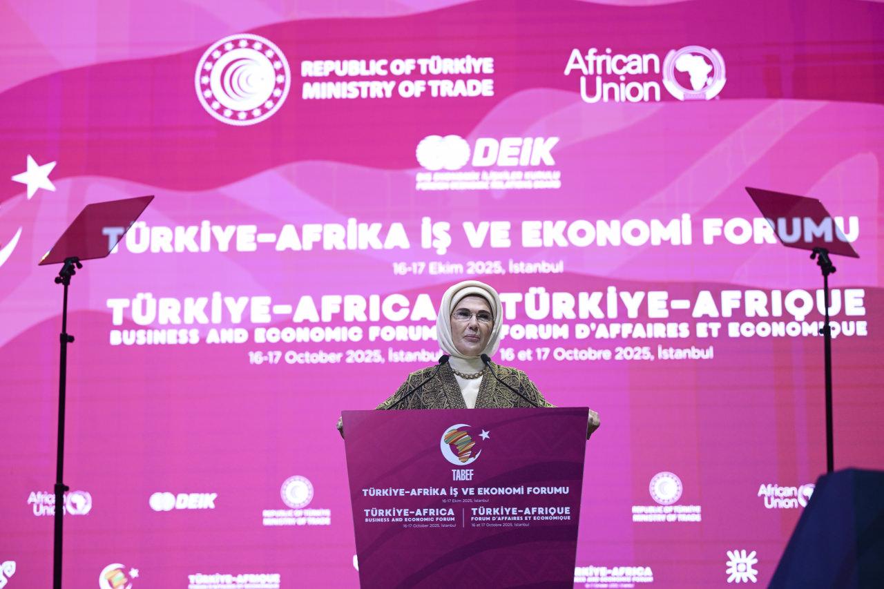 Emine Erdoğan, Ticaret Bakanlığının ev sahipliğinde, Afrika Birliği koordinasyonunda ve Dış Ekonomik İlişkiler Kurulunun (DEİK) organizasyonuyla İstanbul Kongre Merkezi'nde düzenlenen Türkiye-Afrika İş ve Ekonomi Forumu'na (TABEF) katıldı.