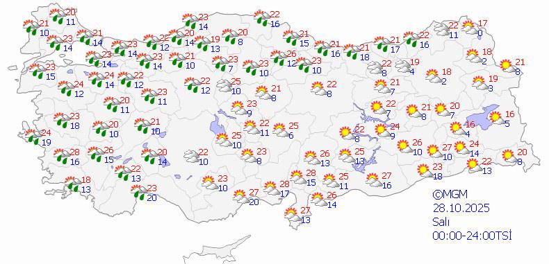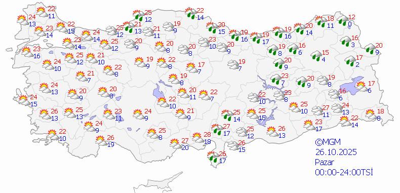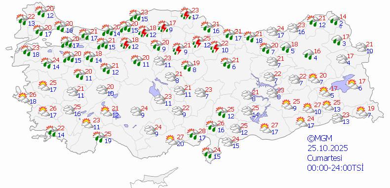 Bakanlıktan yapılan açıklamada, "Meteoroloji Genel Müdürlüğü'nden alınan son bilgilere göre; 25 Ekim 2025 Cumartesi günü;