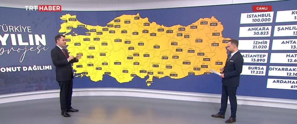 Çevre, Şehircilik ve İklim Değişikliği Bakanı Murat Kurum TRTHaber canlı yayınında 500 bin Konut Projesi ile ilgili merak edilenleri cevapladı.