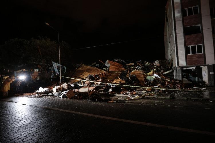Balıkesir'in Sındırgı ilçesinde 6,1 büyüklüğündeki depremin ardından başlayan sağanak, çalışmaları olumsuz etkiliyor.