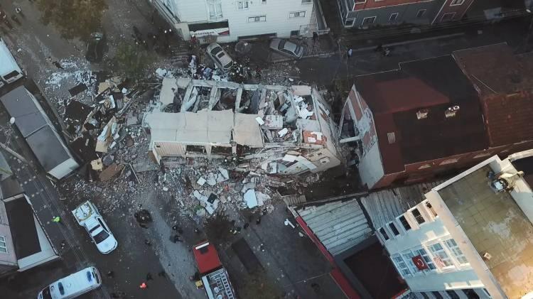 Kocaeli'nin Gebze ilçesinde çöken 6 katlı binanın enkazı ve ekiplerin arama kurtarma çalışmaları dron ile havadan görüntülendi.