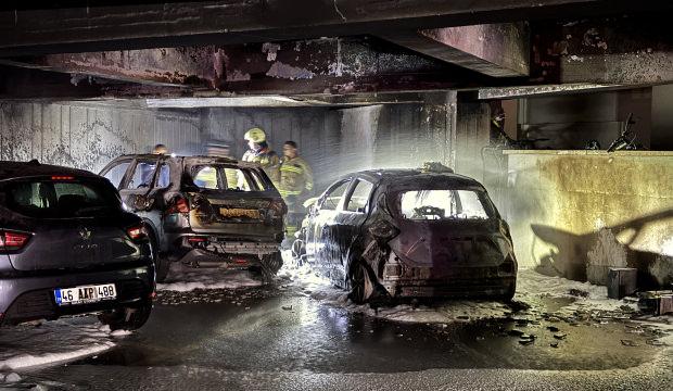 Otoparkta yangın paniği: 3 araç hasar gördü, 18 kişi tahliye edildi