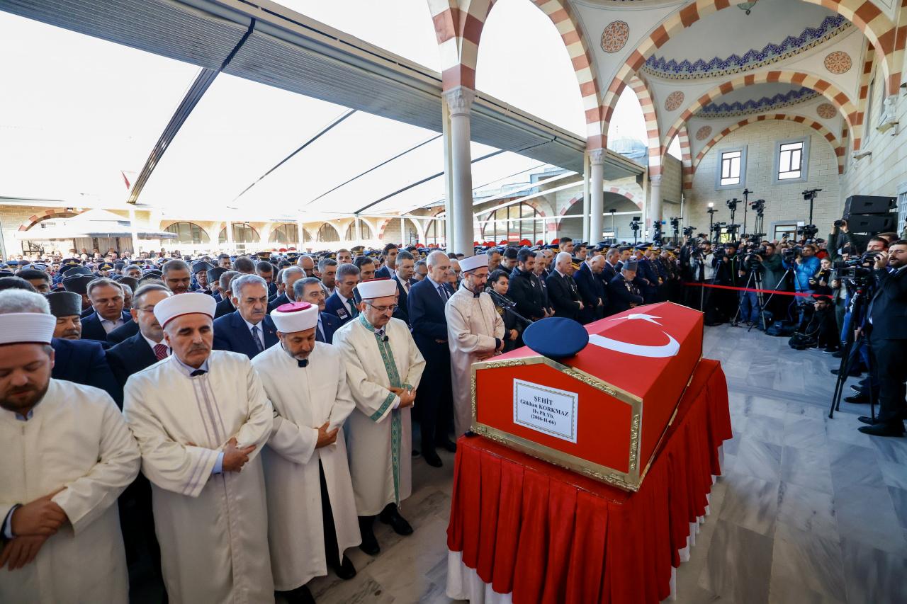 Azerbaycan-Gürcistan sınırında düşen C130 tipi askeri kargo uçağında şehit olan Hava Pilot Yarbay Gökhan Korkmaz, Büyükçekmece Kuba Camisi'ndeki cenaze töreninin ardından son yolculuğuna uğurlandı.
