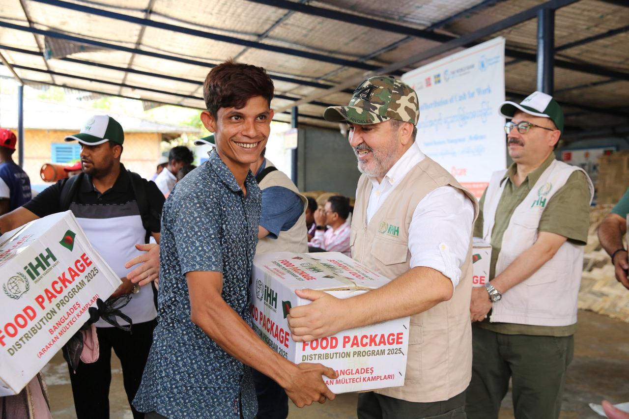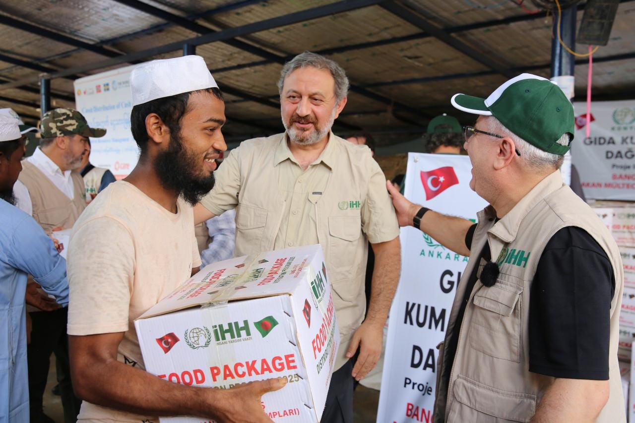 İHH Mütevelli Heyeti Üyesi Sayit Demir, yardım programı kapsamında yaptığı konuşmada “İHH İnsani Yardım Vakfı olarak Bangladeş’te bulunan Arakanlı Müslümanların kampındayız. Burası dünyanın en büyük mülteci kampı. Yaklaşık 1 milyon 100 bin mülteci bu kampta hayata tutunmaya çalışıyor. 90’lı yılların başından bu yana Myanmar’dan buraya göç devam ediyor ve bu insanlar dışarıdan gelen yardımlarla yaşamlarını sürdürüyorlar. Myanmar’ın zulmünden kaçan Arakanlı Müslümanlar, bambu evlerde bir şekilde yaşamanın yollarını arıyor. İHH olarak krizin başından bu yana bölgedeyiz. Burada çocuk bakım merkezleri, ilk yardım klinikleri kurduk; 13 bin bambu ev inşa ettik. Su kuyuları açtık, gıda dağıtımları yaptık ve yapmaya devam ediyoruz. Çocukların kendi dillerini unutmamaları için kurslar düzenliyoruz. Krizin başından bu yana sadece insani yardım değil, kültürel çalışmalar da yürütüyoruz” şeklinde konuştu.