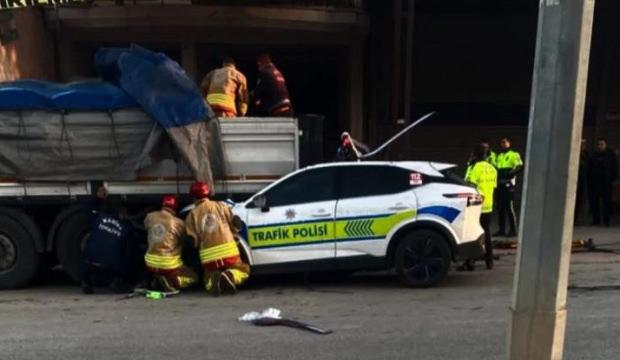 Edinilen bilgiye göre, Yenimahalle Mahallesi Süleyman Demirel Bulvarı üzerinde seyir halinde olan Bölge Trafik Denetleme İstasyon Amirliğinde görevli polis memuru Hatice Ünal ile Ali Barut'un bulunduğu trafik aracı önündeki tıra arkadan çarptı.