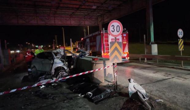 Edinilen bilgiye göre 34 MVF 612 plakalı otomobil, henüz belirlenemeyen bir nedenle kontrolden çıkarak aşırı hızla gişelere çarptı. Çarpmanın şiddetiyle otomobil adeta hurdaya dönerken, araçta yangın çıktı.
