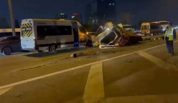 Bağcılar, TEM Otoyolu'nda hafriyat kamyonu, kamyonet ve servis minibüsünün karıştığı zincirleme kaza meydana geldi.