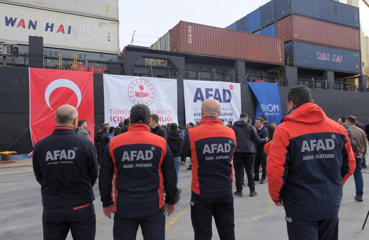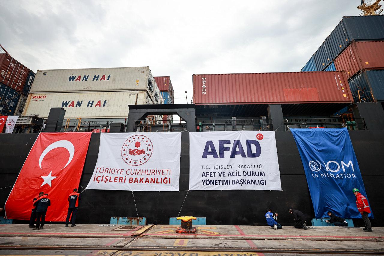 Bu kapsamda AFAD öncülüğünde temin edilen 10 bin 80 çadır, rıhtımdaki "Nz Ningbo" adlı gemiye yüklendi.