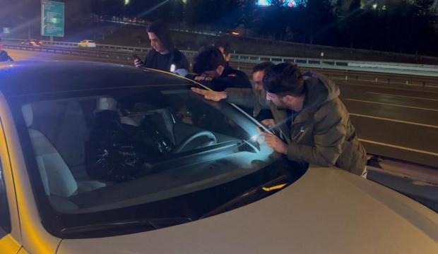 Aracını TEM'in ortasına çekip uykuya daldı! Camı baltayla kırıldı