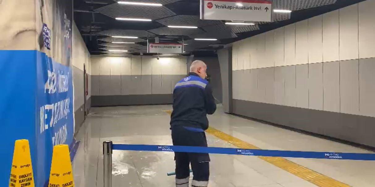 Metro istasyonunun tavan ve duvarlarından sular akması, metroyu kullanan bazı vatandaşların tavanlardan damlayan sulardan dolayı istasyon içerisinde şemsiye açması da dikkat çekerken, metro görevlileri de ellerinde çekpaslar ile suyu tahliye etmeye çalıştı.