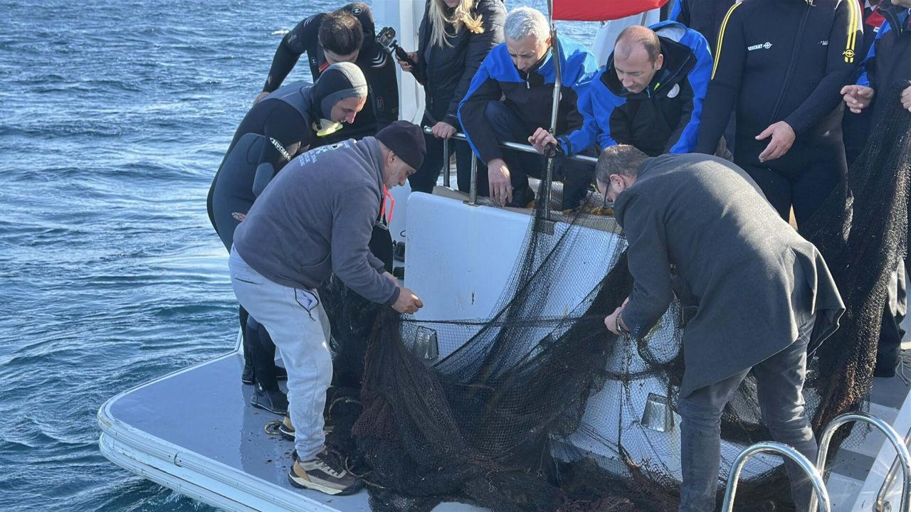 Çanakkale Boğazı'nda 'Denizlerin Terk Edilmiş Av Araçlarından Temizlenmesi Projesi' kapsamında hayalet ağ temizliği yapıldı.