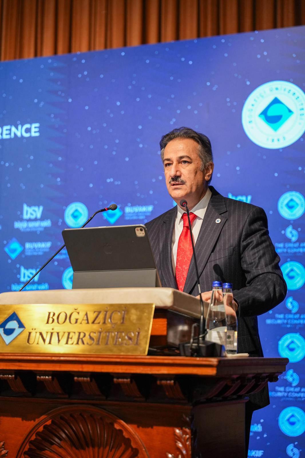 Prof. Dr. Naci İnci, Doğu Akdeniz gibi stratejik ve çok katmanlı bir konunun üniversiteler bünyesinde ele alınmasının akademik sorumluluğun doğal bir parçası olduğunu vurguladı. Boğaziçi Üniversitesi’nin köklü tarihi ve evrensel akademik misyonuna dikkat çeken İnci, Doğu Akdeniz meselesinin yalnızca güvenlik ya da hukuk başlıklarıyla sınırlı olmadığı, bütüncül bir bakış açısıyla ele alınması gerektiği vurgularken küresel ve bölgesel krizler ortamında Akdeniz’in artan stratejik önemine dikkat çekerek iş birliği, sürdürülebilir diplomatik diyalog ve akademik etkileşimin gerekliliğini vurguladı.