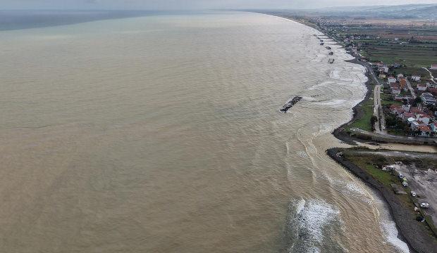 Dronla kaydedilen görüntülerde, denizde mavi ile kahverengi arasındaki renk ayrımı net şekilde görüldü.