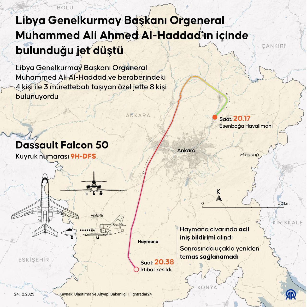 Yapılan arama çalışmaları sonucunda, uçağın enkazına Ankara’nın Haymana ilçesi kırsalında ulaşılmış; uçakta bulunan Libya Genelkurmay Başkanı, Kara Kuvvetleri Komutanı, beraberindeki askerî heyet üyeleri ve uçuş ekibinin tamamının hayatını kaybettiği tespit edilmiştir.