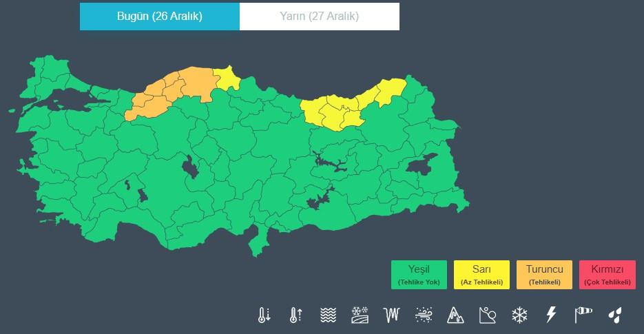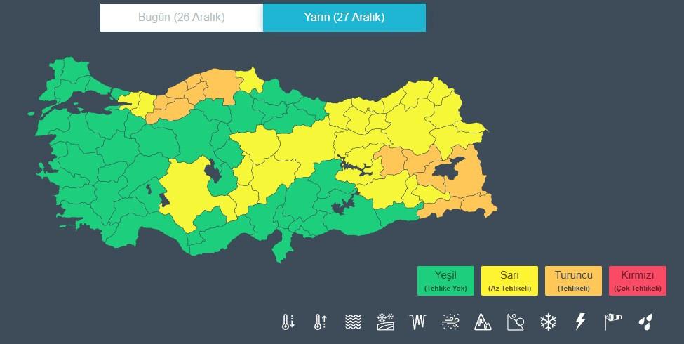 BUGÜN 13 KENTTE SARI VE TURUNCU ALARM