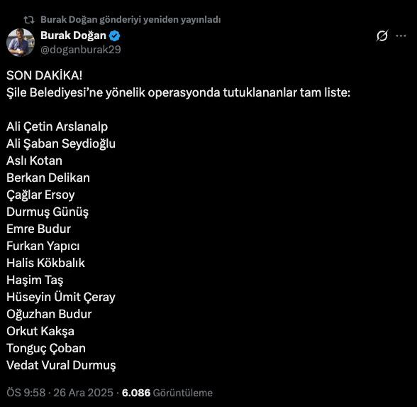 Şile Belediyesi’ne yönelik operasyonda tutuklananların isimleri şöyle: