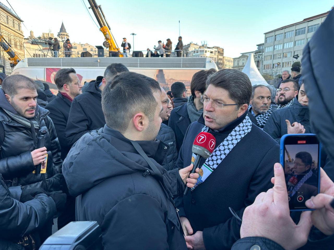 "İnsanlık ittifakı burada. Yeryüzündeki bütün müstekbirlere, yeryüzündeki bütün zalimlere insanlığın merhametini haykırmak; Gazze'deki dirilişi ve direnişi unutmadığını, unutturmayacağını ifade etmek için burada."