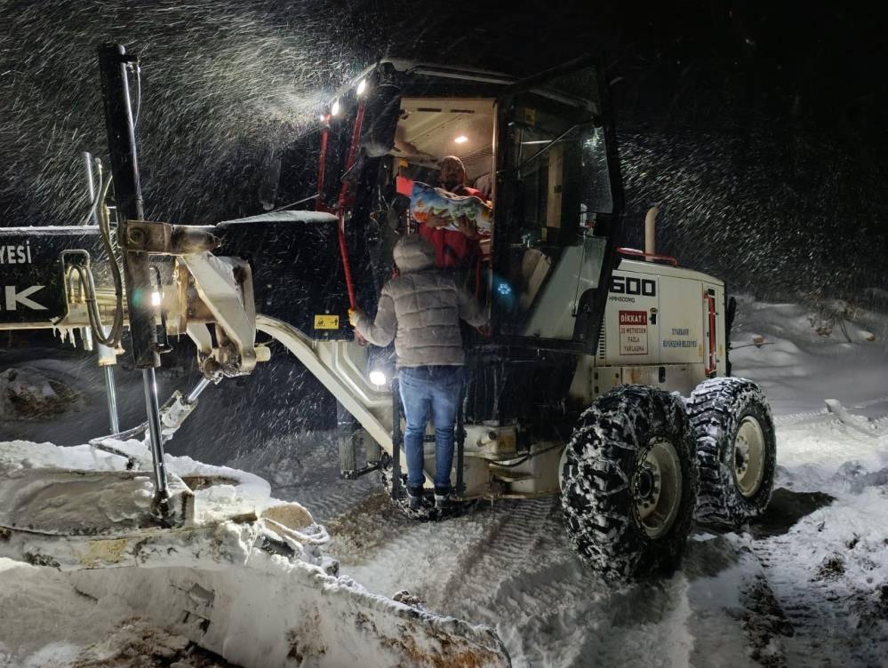 Diyarbakır'ın Hazro ilçesinde sağlık ekipleri, rahatsızlanan 1 yaşındaki Mina'ya greyder eşliğinde ulaştı.