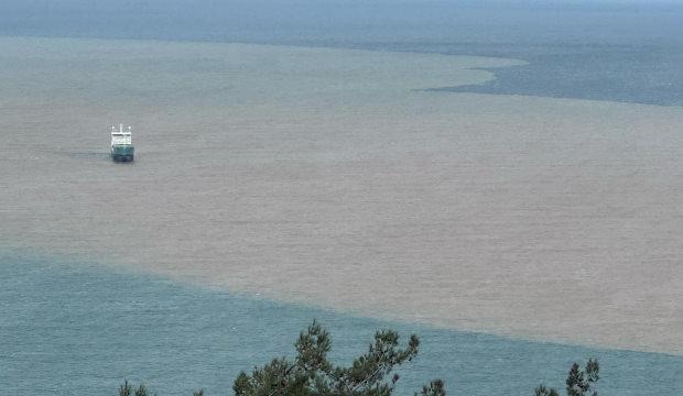 Çamurlu suyun aktığı kesim ile geniş alanda denizin rengi değişti.