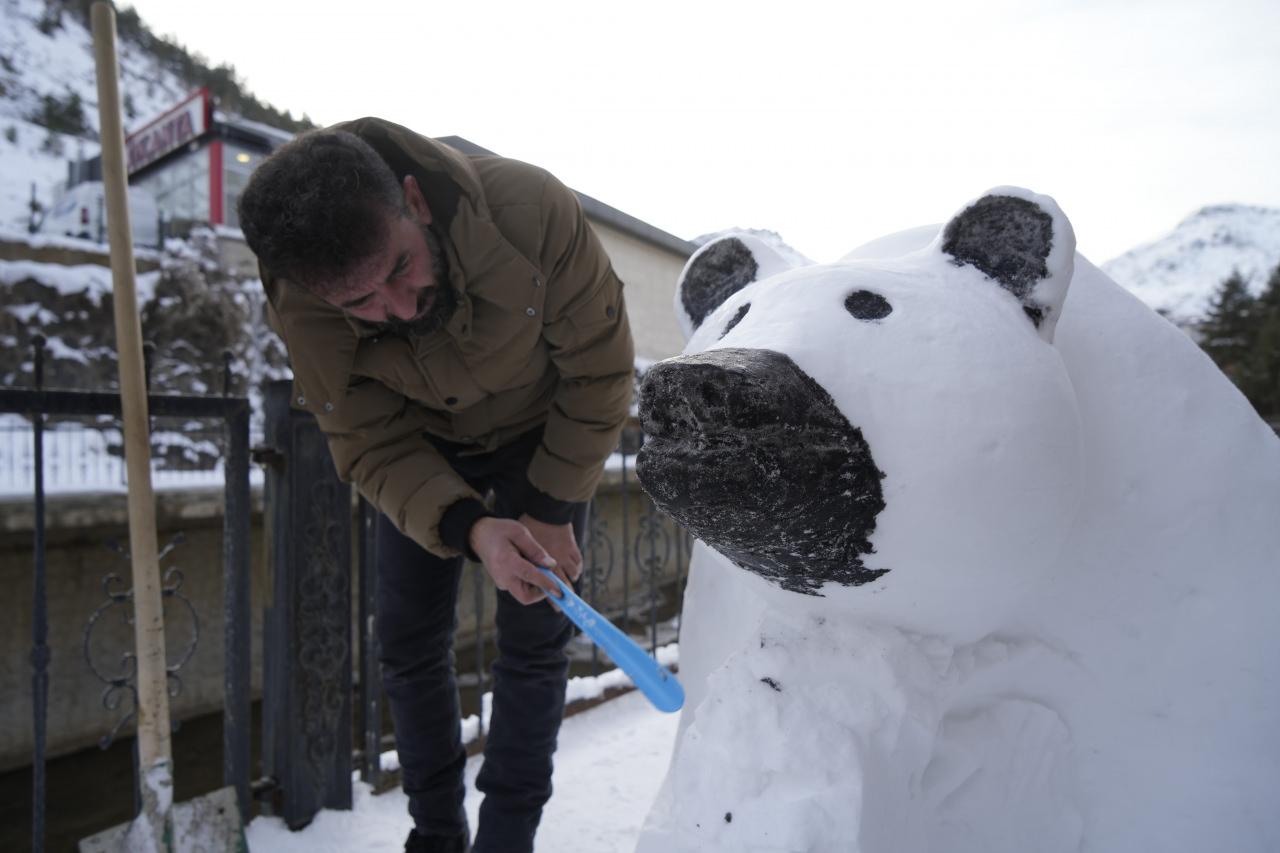 Kent merkezinde kar yağışını fırsata çeviren tır şoförü Cihan Oral, yalnızca kürek ve ayakkabı çekeceği kullanarak anne ayı ve yavrusunu karla şekillendirdi. Çocuklarıyla birlikte ortaya koyduğu çalışma, kısa sürede mahallede ilgi odağı haline gelirken vatandaşların da beğenisini topladı. Herhangi bir eğitim almadığını belirten Oral, kara kalem çizimlerinden farklı el işlerine kadar birçok sanat faaliyetiyle uğraştığını söyledi. Daha önceki yıllarda da çeşitli figürlerde kardan heykeller yapan Oral, kar yağdığında bunu sanata dönüştürmekten büyük keyif aldığını ifade etti.
