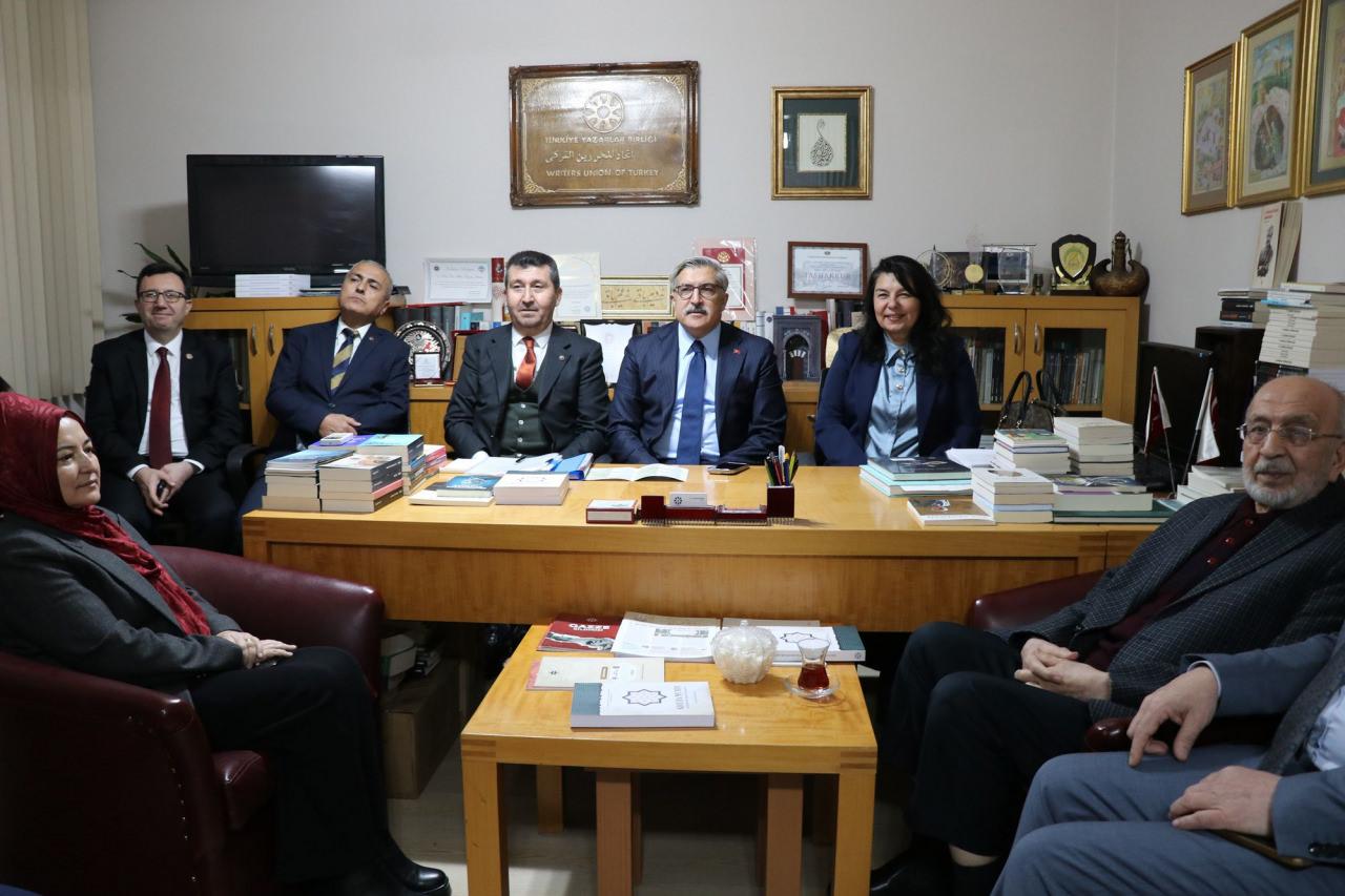 Ziyaretten duyduğu memnuniyeti dile getiren TYB Genel Başkanı Prof. Dr. Musa Kazım Arıcan ise birliğin 1978 yılından bu yana süregelen mücadelesini anlattı. Arıcan, "TYB, kalemini medeniyet değerlerine yaslayan yazarların sığınağıdır. Temel gayemiz, Türkçemizi bir medeniyet dili olarak korumak ve yaşatmaktır," ifadelerini kullandı.