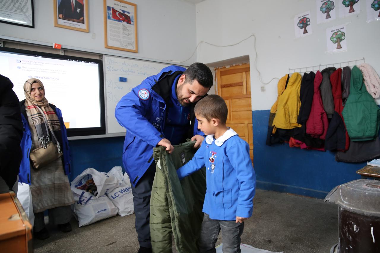 KÖY OKULLARINDA KIŞLIK KIYAFET DAĞITIMI YAPILDI