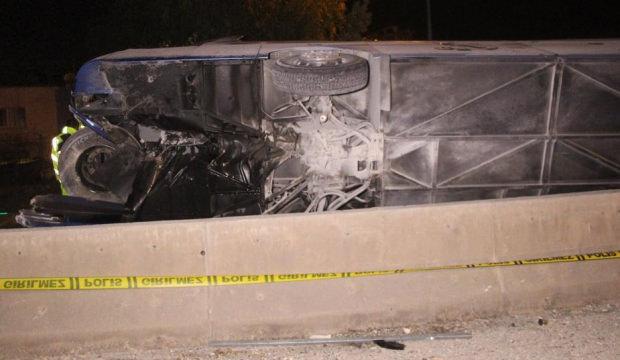 Adana’da otoyolda beton bariyere çarpan yolcu otobüsü devrildi. Meydana gelen kazada 8 kişi yaralandı.