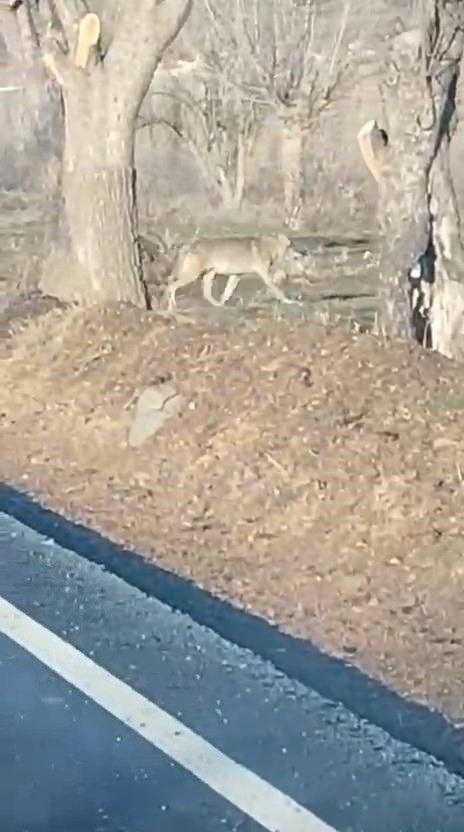 Nevşehir’de aç kalan kurtlar yol kenarında yiyecek ararken cep telefonu kamerasına yansıdı.