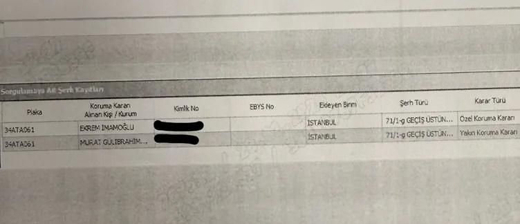 Yapılan incelemelerde 34 ATA 061 plakalı resmi araç dikkat çekti. Aracın bizzat Ekrem İmamoğlu adına 10 Eylül 2019- 20 Mayıs 2021 tarihleri arasında koruma kararı olduğu saptandı.