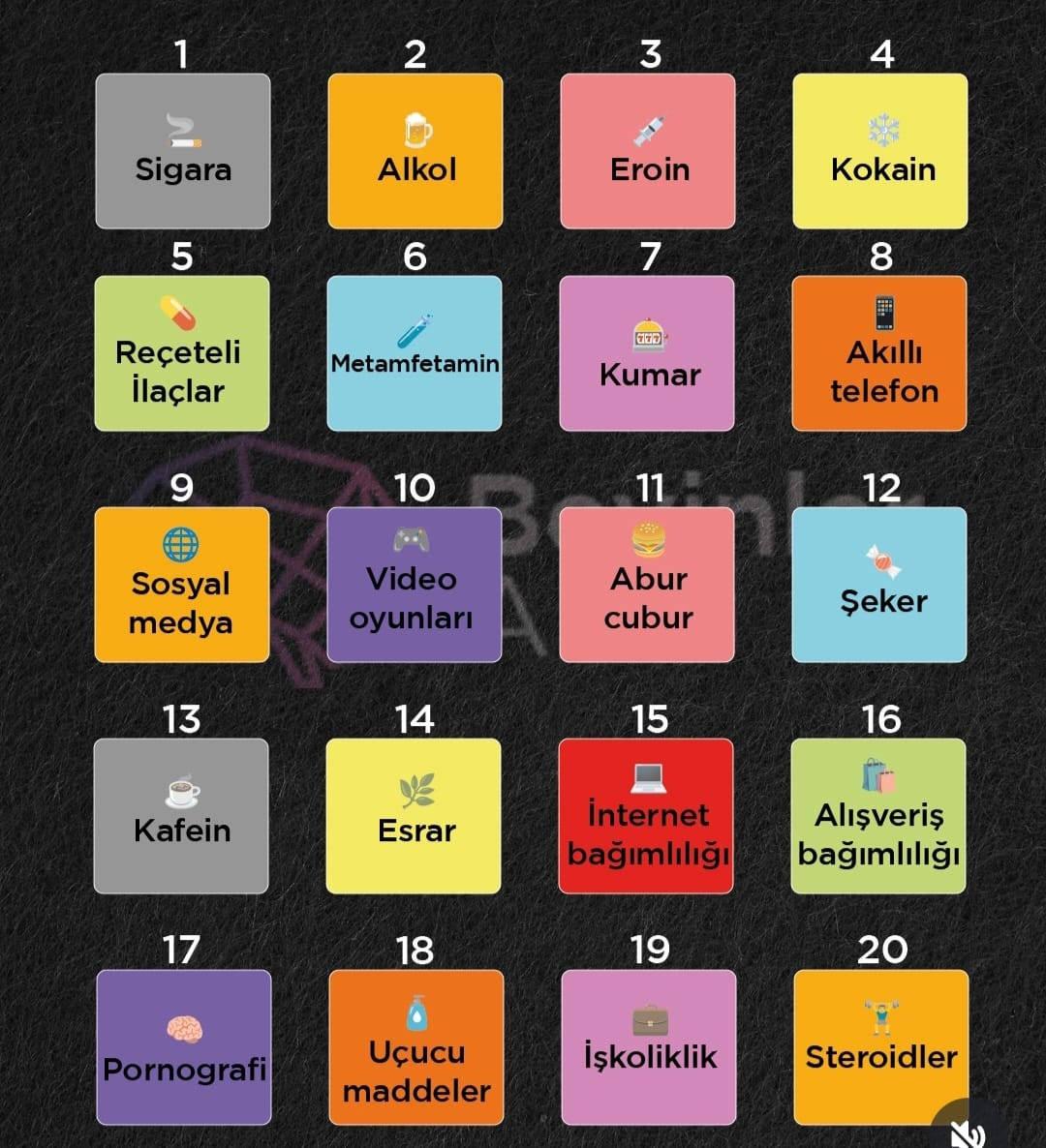 Dünya Sağlık Örgütü, Amerikan Psikiyatri Derneği ve Harvard Tıp Okulu'nun ortaklaşa yaptığı çalışmalarla en çok görülen bağımlılıklar belli oldu.