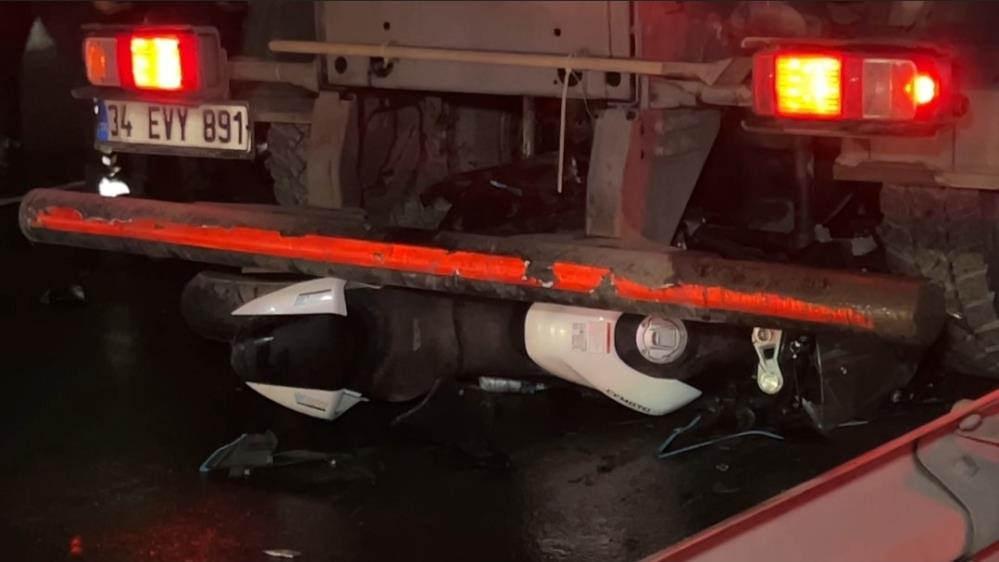 İstanbul'un Küçükçekmece ilçesinde motosikletin belediyeye ait temizlik aracına çarpması sonucu 2 kişi hayatını kaybetti.