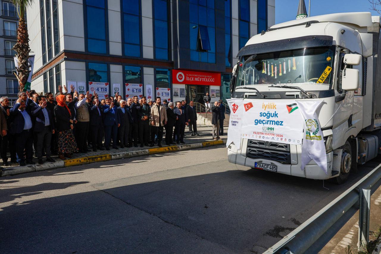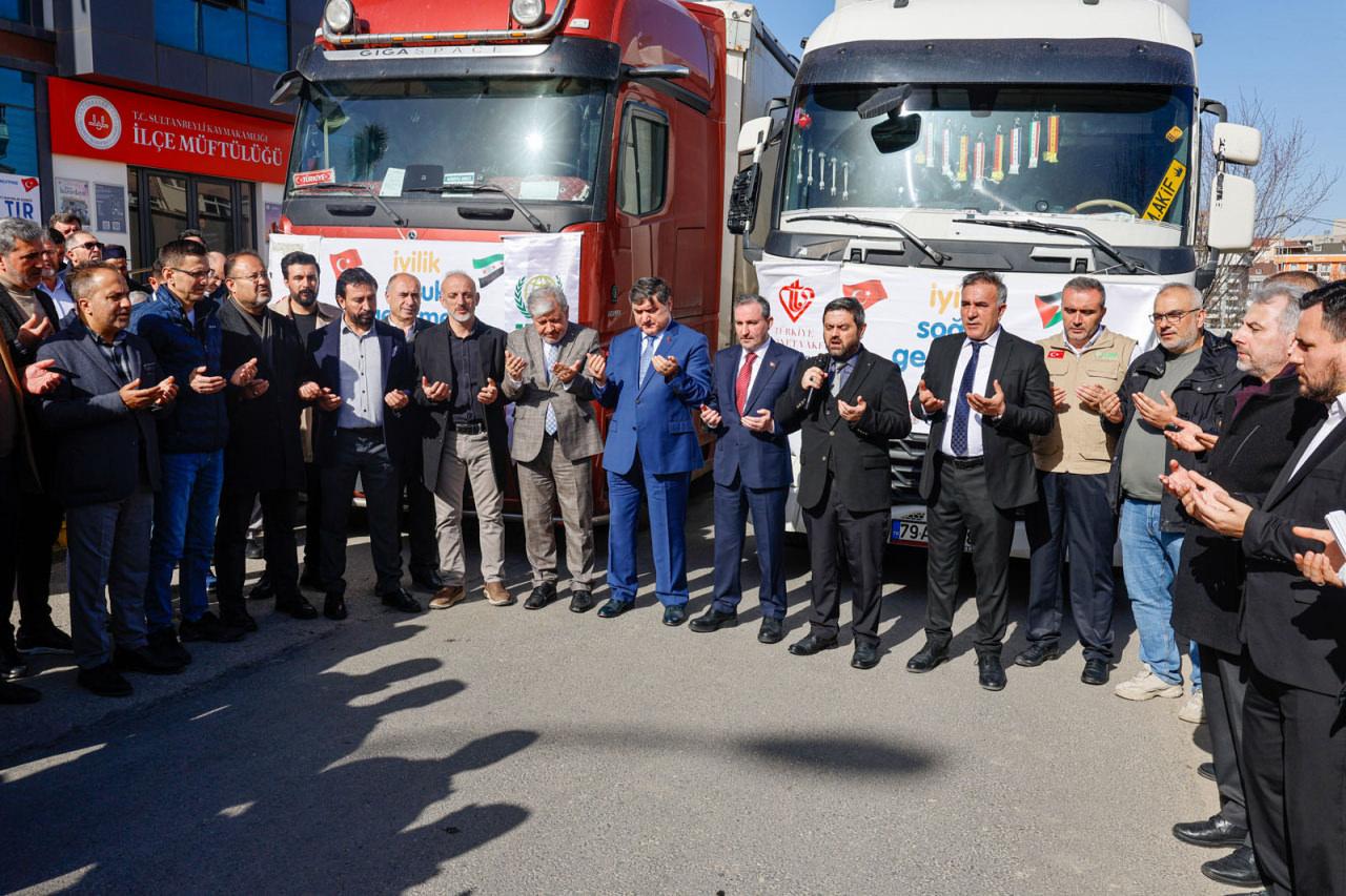 İlçe Müftüsü Bilal Albayrak'ın dua ettiği törende yardım tırlarından 2'si Gazze'ye, 2'si Suriye'ye ve 1'i de Sudan'a olmak üzere toplam 5 tır yolcu edildi.