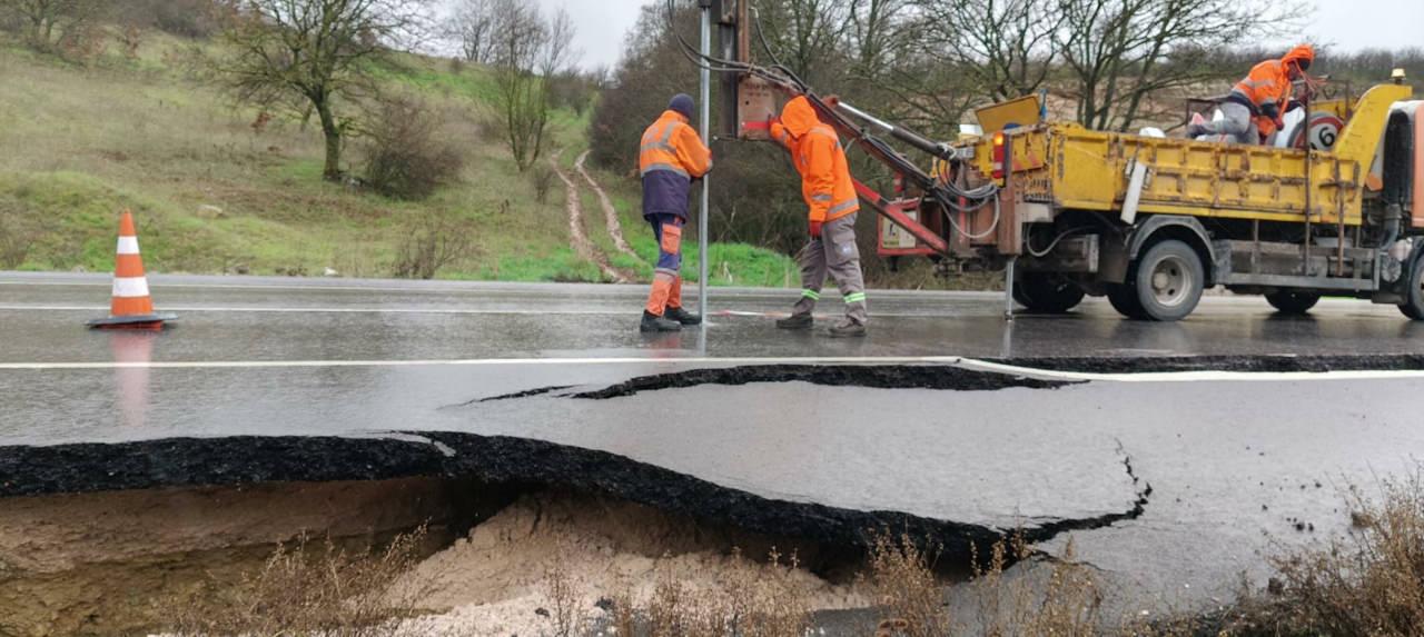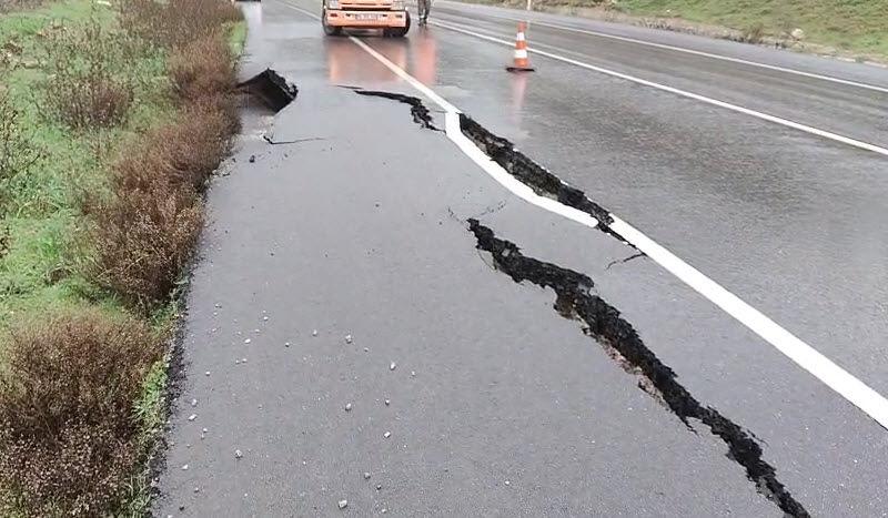 Asfalt yolun bir kısmı, zeminin yağış sonucu yumuşaması ile çöktü. Bölgede trafik akışı tek yönlü ve kontrollü olarak sağlanırken, ekipler tarafından çalışma başlatıldı.