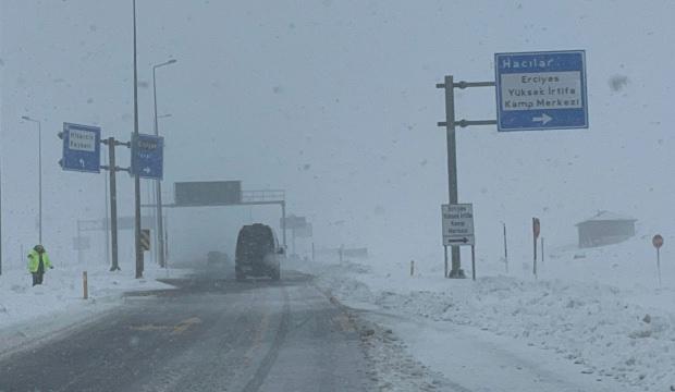 Kayseri'de, sabah saatlerinde etkili olan kar yağışı sonrası Erciyes kara yolu ulaşıma kapandı.