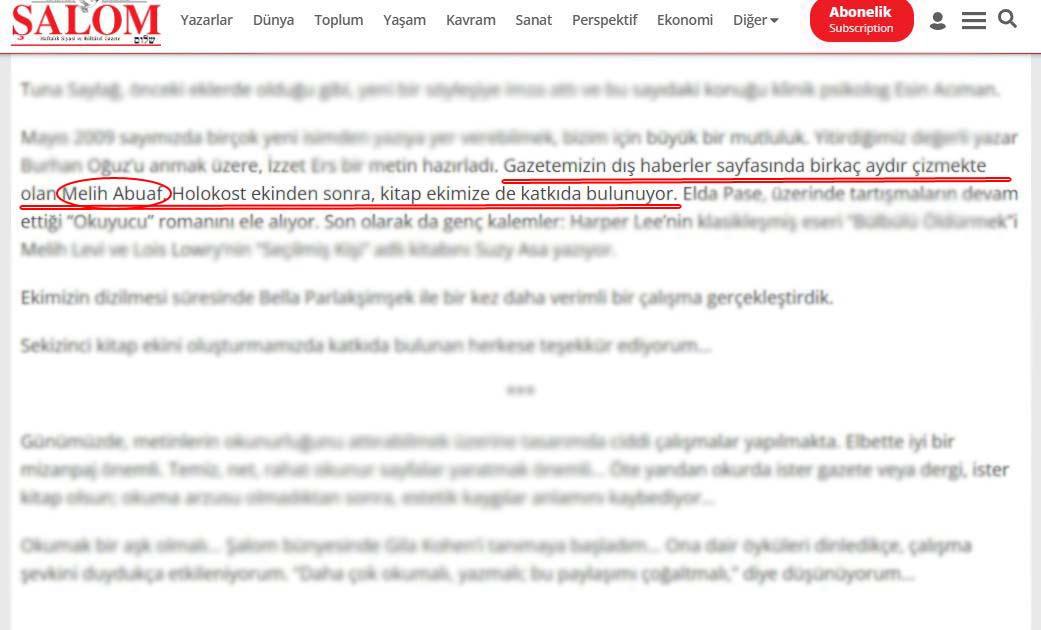 Abauf'un birçok akrabasının İsrail'de yaşadığı ve Netanyahu destekçisi olduğu, İsrail ordusunda görev yapmış kişilerle de yakın etkileşim halinde olduğu iddia edilirken Melih Abuaf’ın Türkiye'de faaliyet gösteren İsrail destekçisi Şalom Gazetesi’nde bir dönem yazarlık ve karikatür çizimi yaptığı öğrenildi.