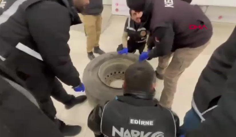 Edirne'den Bulgaristan'a açılan Hamzabeyli Sınır Kapısı'ndan Türkiye'ye giriş yapan TIR'ın stepnesinde 22,5 kilo skunk ele geçirildi, 1 şüpheli gözaltına alındı.