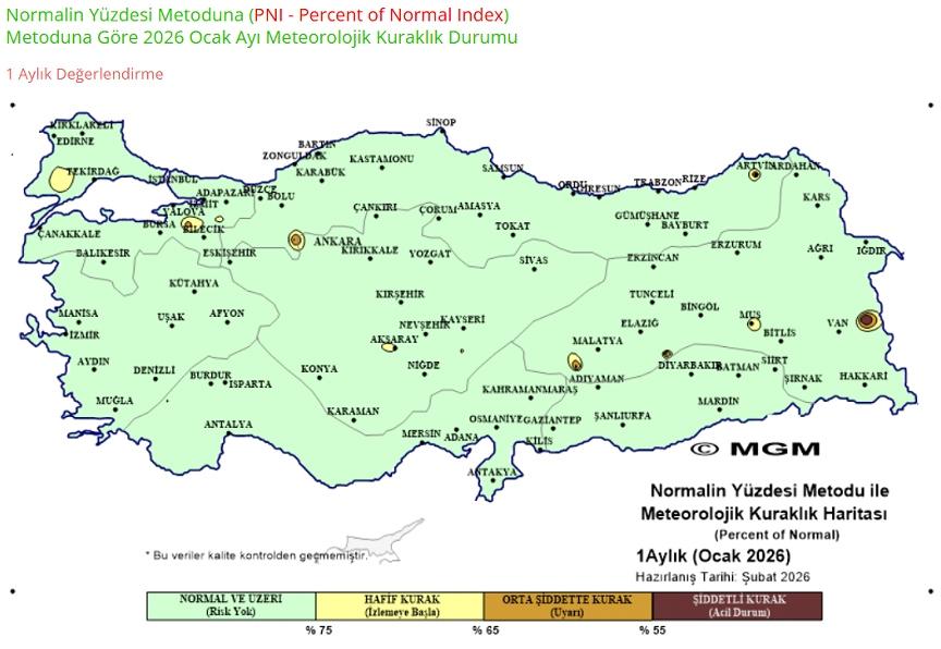 Meteoroloji Genel Müdürlüğü’nün Ocak 2026 haritası ilk bakışta yüz güldürüyor:
