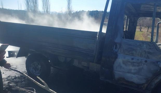 Seyir halindeki kamyonet alev alev yandı