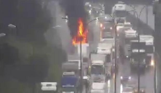 Tuzla TEM Otoyolu’nda TIR kupası alev alev yandı
