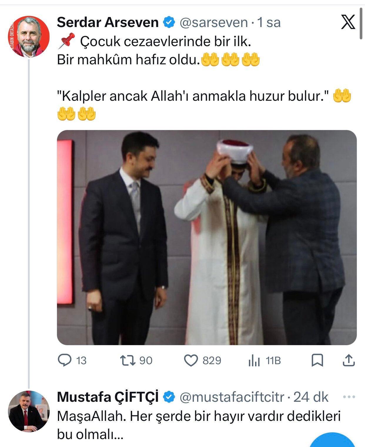 Çocuk cezaevlerinde bir ilk yaşanarak bir çocuk mahkum, eğitimini tamamlayarak hafız oldu. Konuyla ilgili İçişleri Bakanı Mustafa Çiftçi, Adalet Bakanı Akın Gürlek ve Diyanet'ten açıklamalar geldi.